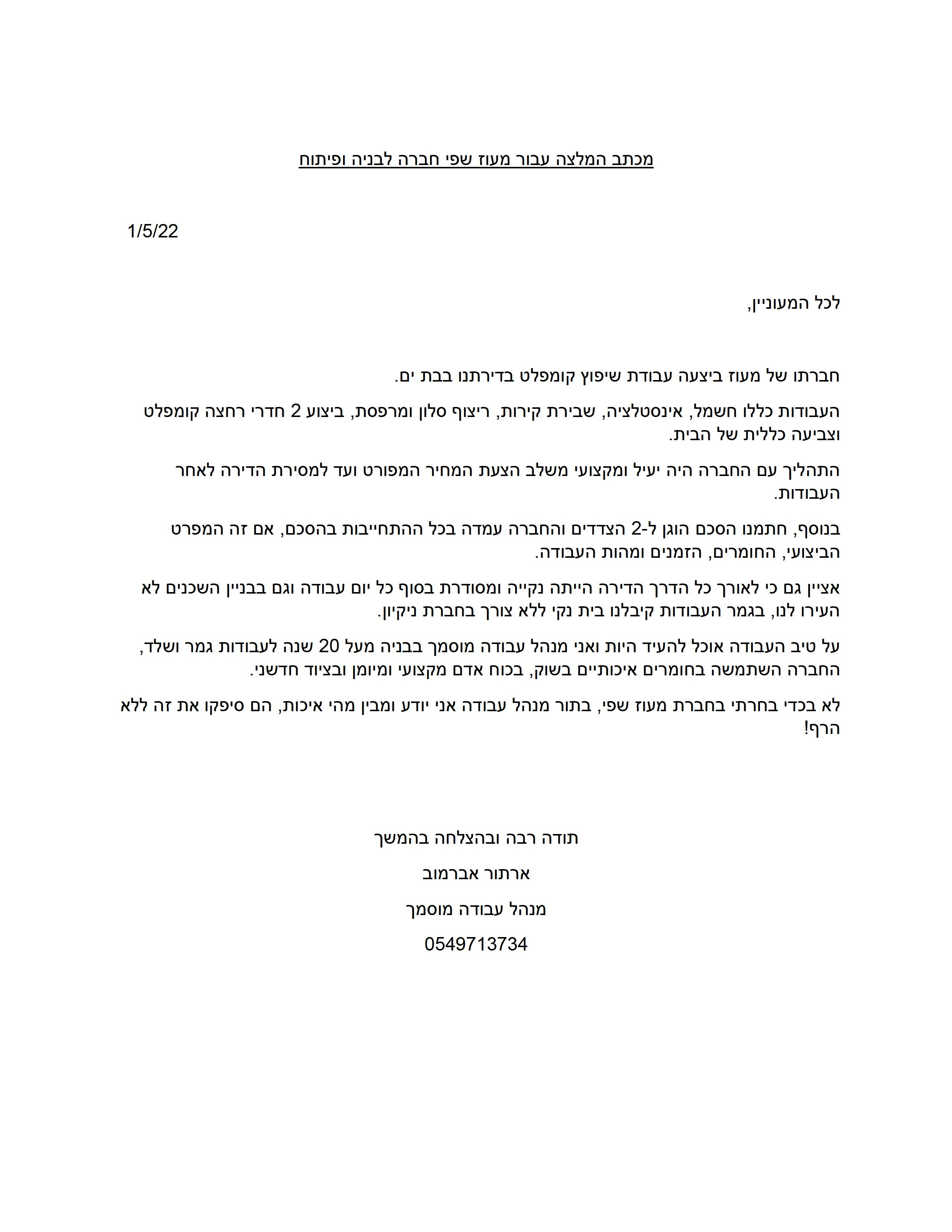 החברה ניהלה את העבודות ואת קבלני המשנה תוך ליווי ופיקוח החברה על הפרויקט