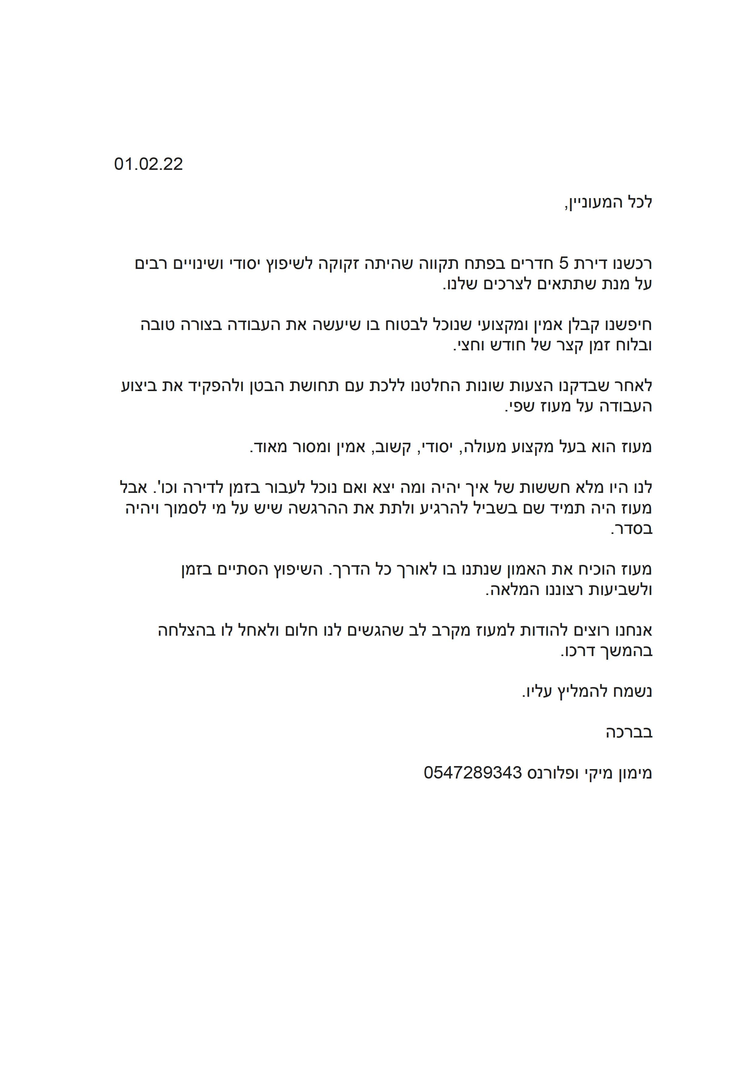 עבורנו ב"מעוז שפי", כל פרויקט הוא הזדמנות להפוך תכנון למציאות של איכות חיים. התוצאה שלפניכם היא בית שלא רק נעים לגור בו, אלא מקום שמעניק שלווה, אנרגיות חיוביות וחיבוק חם לדייריו.