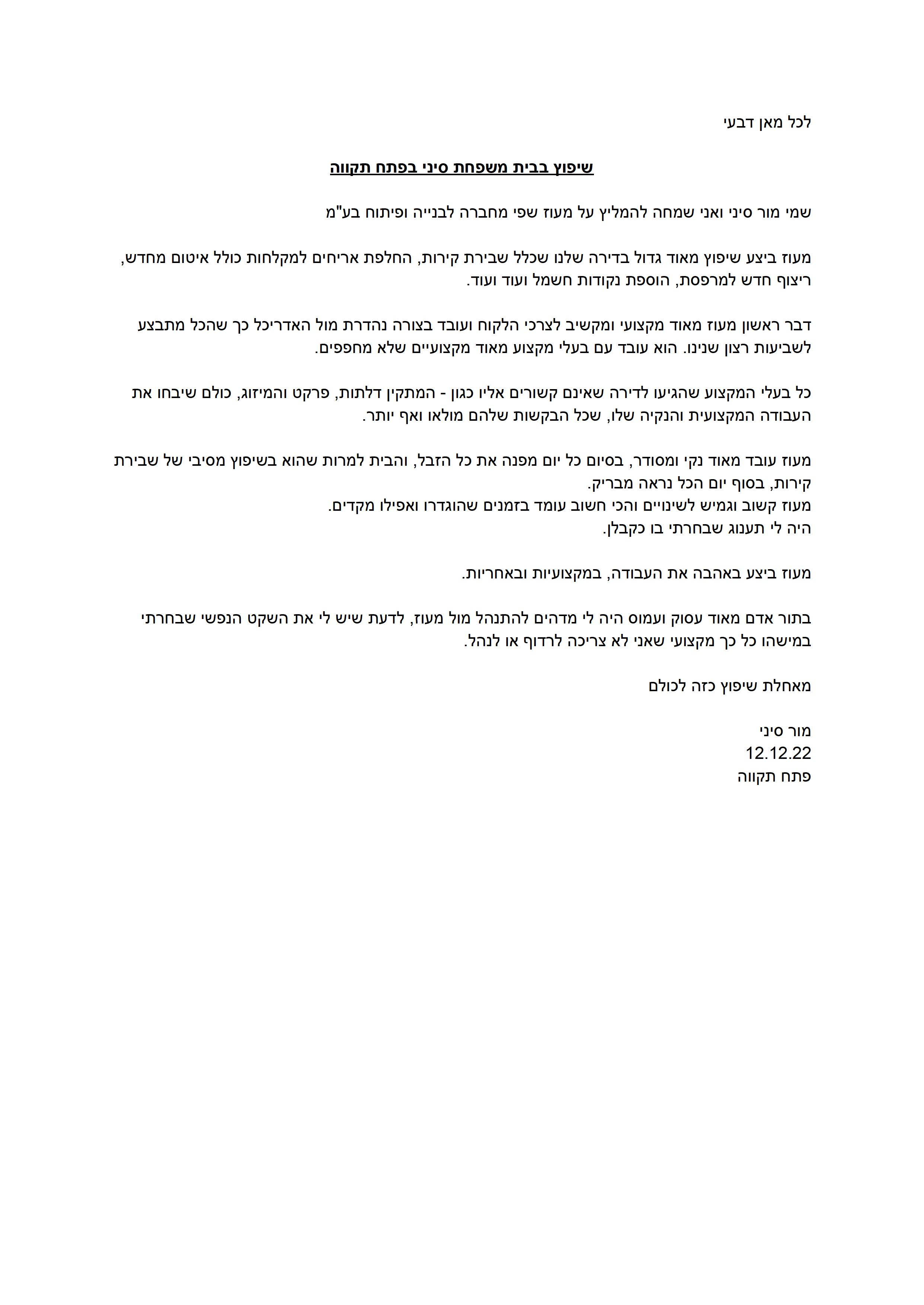בית משפחת סיני נווה גן פ"ת