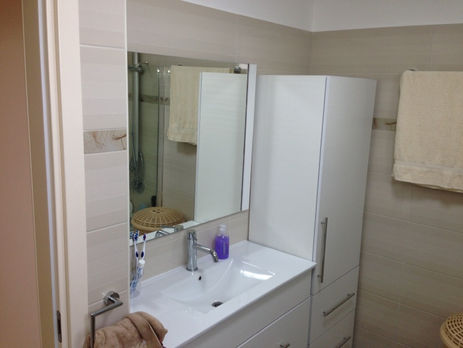 דירת מגורים 3 חדרים בסגנון מנימליסטי, הפרויקט תוכנן ועוצב עבור זוג צעיר שרכש דירה ראשונה בבניין ישן במרכז פ"ת. הדירה כ- 80 מ"ר, בוצע חידוש לדירה מהיסוד הכולל: עבודות אינסטלציה, חשמל, אלומיניום, מיזוג אוויר, איטום, חיפוי, ריצוף, שבירות הריסות, צבע, גבס, שפכטל אמריקאי, הקמת מחיצות פנים וכל זה ע"פ תוכניות ביצוע מפורטות
