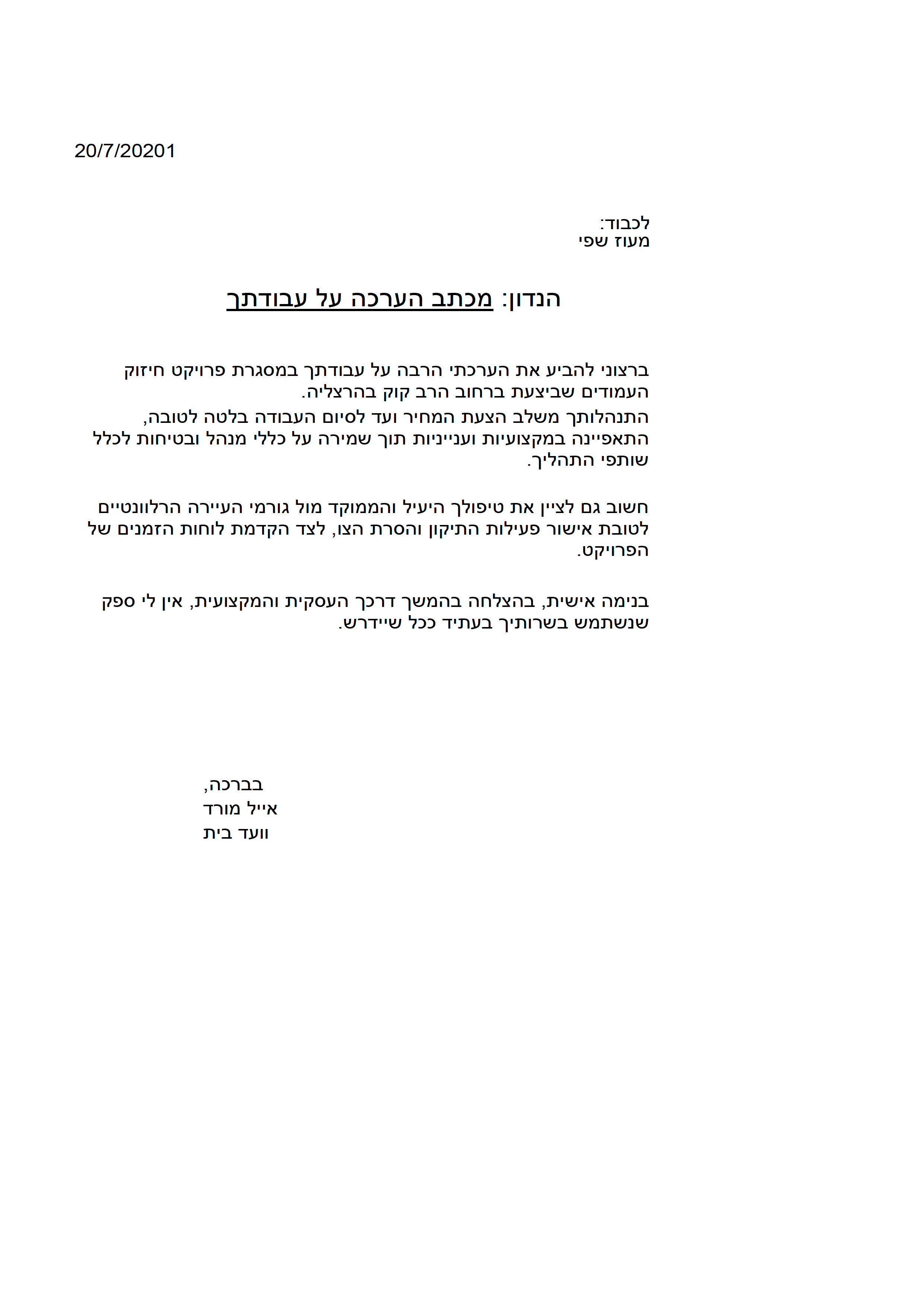 הסרת צו מהנדס העיר בעיר הרצליה, העבודות כללו חיזוק עמודים נושאים, שיקום עמודים בדלים, שיקום תקרות, עבודות טיח וצבע בחניון הבניין. העבודות נעשו תחת פיקוח מהנדס מטעם החברה וכן הוסר הצו מול הרשות המקומית תוך שבוע ימים בלבד מסיום העבודות