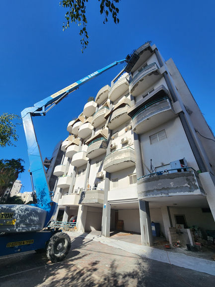 בפרויקט זה ביצענו שיקום מקיף למבנה מגורים בשכונת בבלי, לאחר שהבניין קיבל צו מבנה מסוכן עקב נשירת פסיפס מחזיתותיו. מטרת השיפוץ הייתה לחזק את מעטפת הבניין, לשדרג את מראהו ולשפר את עמידותו לאורך זמן.בשלב הראשון הוסרו כל שכבות הפסיפס מ-22 מרפסות המבנה, ובאזורים נוספים שבהם הפסיפס החל להתפורר בוצעו תיקוני שחזור כדי לשמור על המראה האחיד של החזיתות. לאחר הסרת הפסיפס, יישמנו שכבת גמר חדשה של שליכט צבעוני איכותי, שהעניקה למבנה מראה מודרני, נקי ואחיד. בנוסף, בוצעה צביעה יסודית של כלל מעקות המבנה, ששיפרה את המראה הכללי של הבניין ואת עמידותם של המעקות בפני פגעי מזג האוויר.חלק משמעותי נוסף בפרויקט היה שיקום ואיטום מחדש של מסתורי הכביסה. לאחר תיקון האזורים הפגועים, הותקנו אלמנטים מאלומיניום ורשתות הגנה, שנועדו למנוע חדירת ציפורים ולשפר את התחזוקה השוטפת של הדיירים. במקביל, בוצע איטום מחודש בגג הבניין, שהבטיח הגנה מלאה מפני נזקי רטיבות ולחות.העבודות בוצעו באמצעות שתי במות הרמה, מה שאפשר עבודה מדויקת, בטיחותית ויעילה, תוך התחשבות מלאה בנוחות הדיירים. כדי לצמצם את ההפרעה לאורח חייהם, תיאמנו את העבודה כך שבשעות הערב והלילה החניון יישאר פנוי לשימוש הדיירים. שיפוץ זה שדרג את חזות הבניין, חיזק את בטיחותו, שיפר את רמת האיטום והעניק לו מראה מחודש, מודרני ומוקפד.